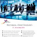 НП "Непрерывное образование" имеет честь пригласить Вас на фестиваль "Great Graduate", который пройдет с 27 по 30 октября 2016 в г. Санкт-Петербург.