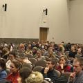 Во встрече приняли участие больше ста человек – студентов 1-4 курсов. Директор Департамента персонала Т.В. Кудряшова рассказала студентам о достижениях Водоканала: в Петербурге вся питьевая вода проходит через очищение ультрафиолетом. Петербург – первый город в мире, где при обеззараживание водопроводной воды не используется жидкий хлор, а заменен на безопасный реагент- жидкий хлор. С октября 2013 года в Петербурге проходит очистку 98,4% всех сточных вод. Петербург- первый мегаполис в мире, где полностью утилизируют осадки сточных вод: в городе работают три завода по его сжиганию. Подробно остановилась на том, что для предприятия очень важны высококвалифицированные специалисты, какие профессии востребованы предприятии, рассказала о приоритетных направлениях подготовки.
